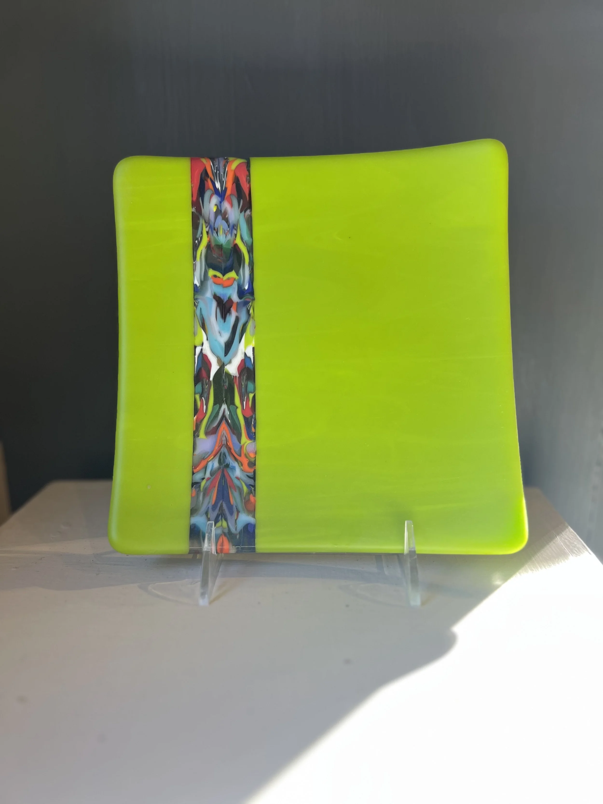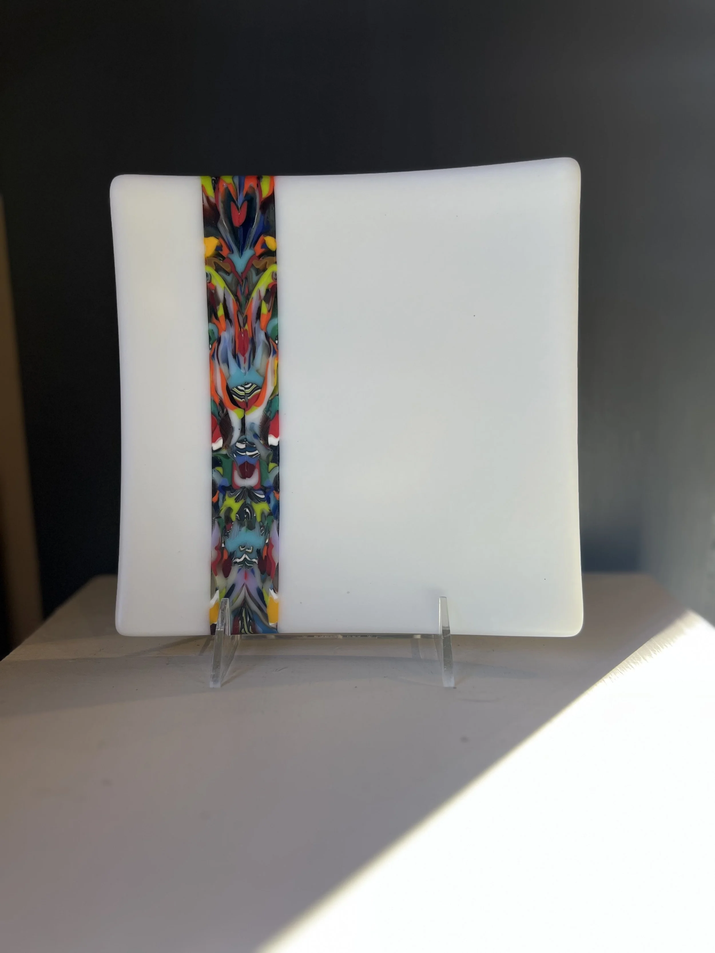 One of a kind fused glass tray by Taos glass artist Scott Messick. Entitled: River